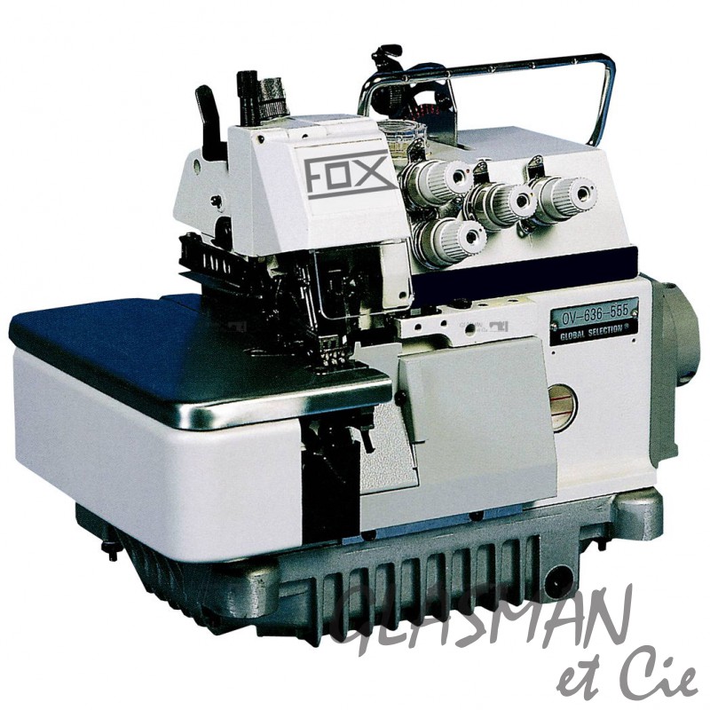 Surjeteuse raseuse industrielle à grande vitesse FOX OV 636-558, 2 aiguille, 5 fils, avec lubrification entièrement automatique et entraînement différentiel à réglage externe. Avec entraînement différentiel supérieur pour travaux trés lourd. Table 105,110 ou 120cm sur 55 ou 60cm.