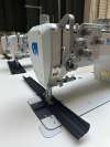 Une machine industrielle à triple entrainement est une machine avec 3 entrainements simultanés : un mouvement inférieur par les griffes, un mouvement double pied ainsi qu’une aiguille en mouvement va et vient.