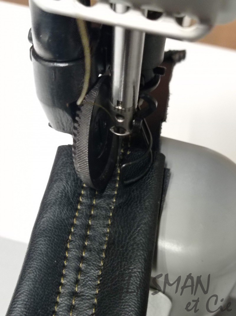 Cette classe de machines s’adapte à la perfection pour une mise en œuvre professionnelle dans le cadre des coutures sur chaussures et autres articles en cuir. Afin d’éviter un croisement des coutures dans les angles. Le crochet est à gauche du pied de biche.