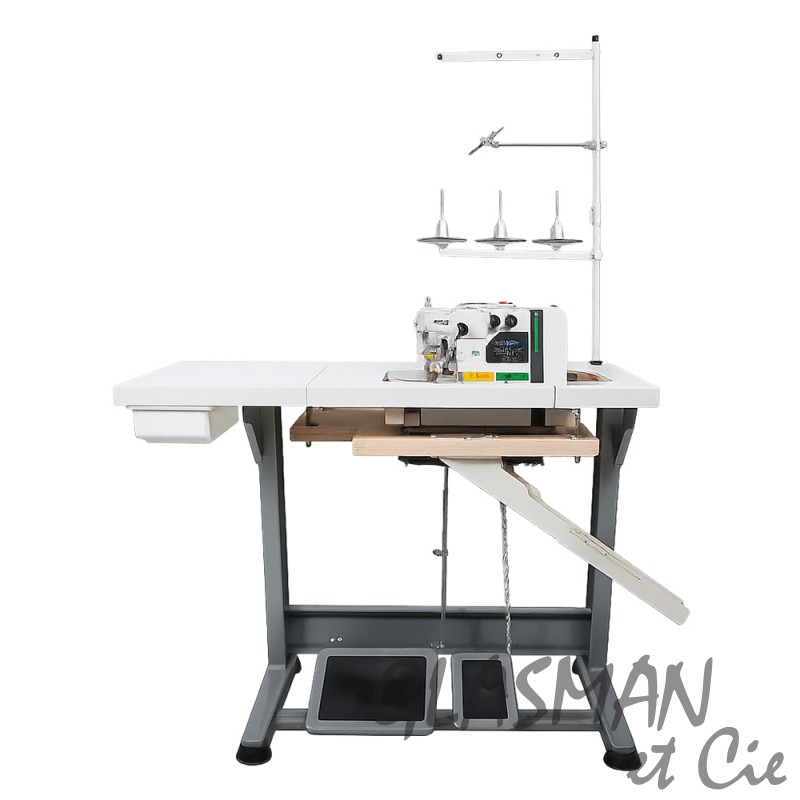 Machine à coudre complète, sur son support et son plateau PREMIUM de la célèbre marque Kessler. Le plateau, en contreplaqué de bouleau 30 plis de très haute qualité, garantit une longue durée de vie et une grande résistance aux conditions d'utilisation. Il est recouvert d'un stratifié structurel offrant une résistance accrue aux chocs et à l'abrasion.