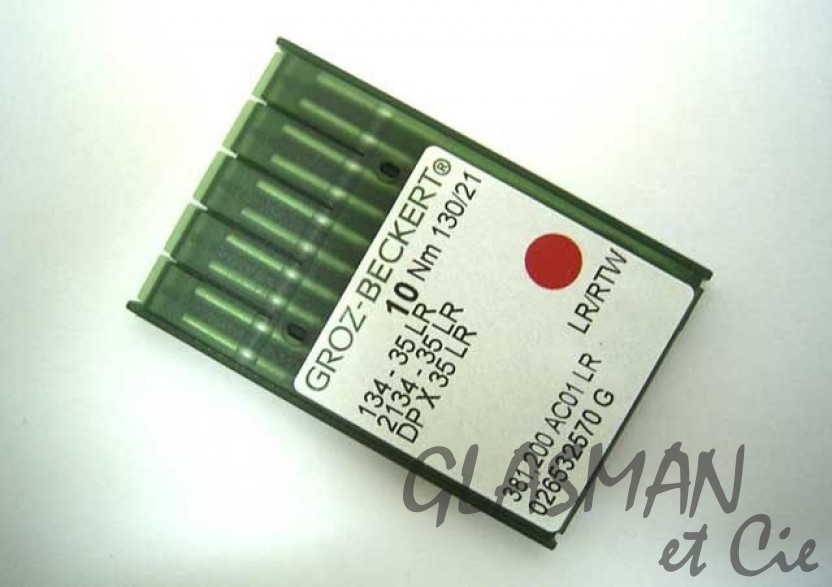 Aiguilles GROZ-BECKERT pour machine à coudre industrielle triple entraînement et pour le cuir, 134-35 LR - 2134-35 LR - DP x 35 LR. Grosseur de l'aiguille - N°130. Plaquete de 10 aiguilles.